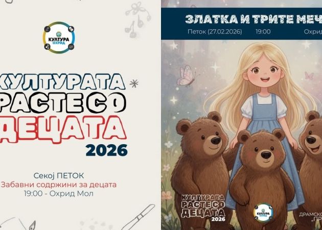 Денес во 19 часот најмладите уживаат во нова културна авантура во рамки на проектот на Општина Охрид „Културата расте со децата – За сите деца“.