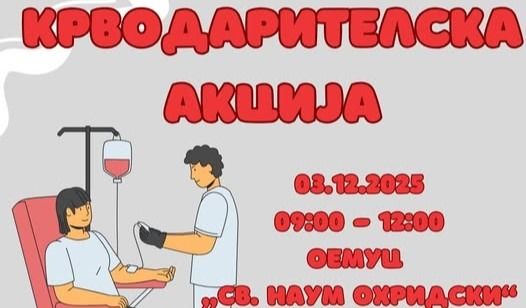 Утре крводарителска акција во ОЕМУЦ „Св. Наум Охридски“