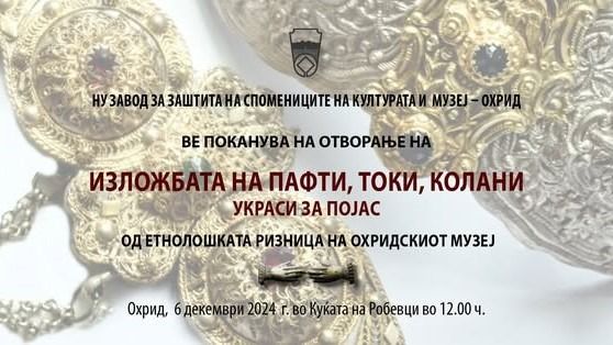 Денес ќе биде отворена „Изложба на пафти, токи, колани – украси за појас од етнолошката ризница на Охридскиот музеј“
