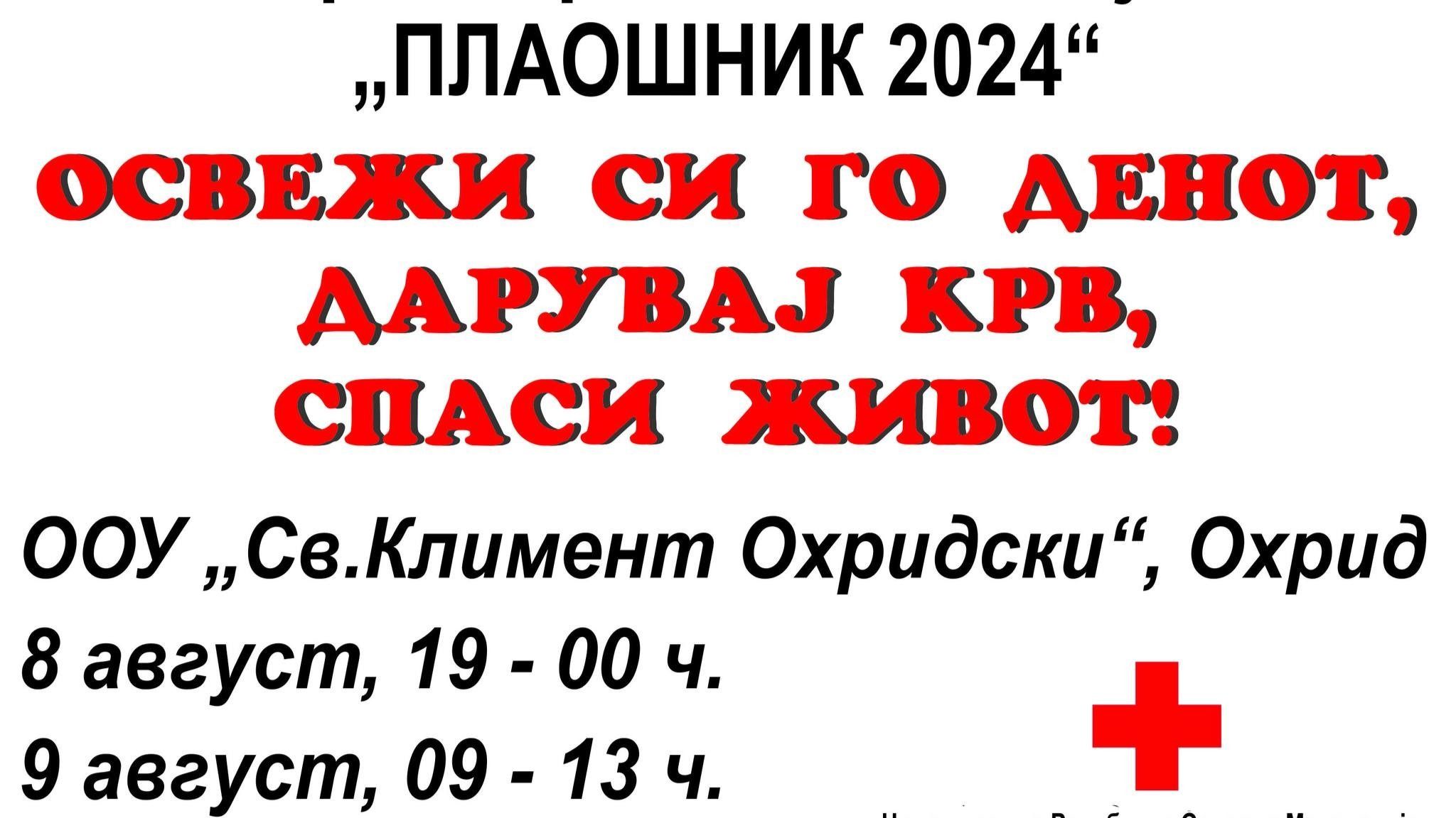 Денес и утре во ООУ „Св. Климент Охридски“ ќе се одржи крводарителска акција „Плаошник 2024“