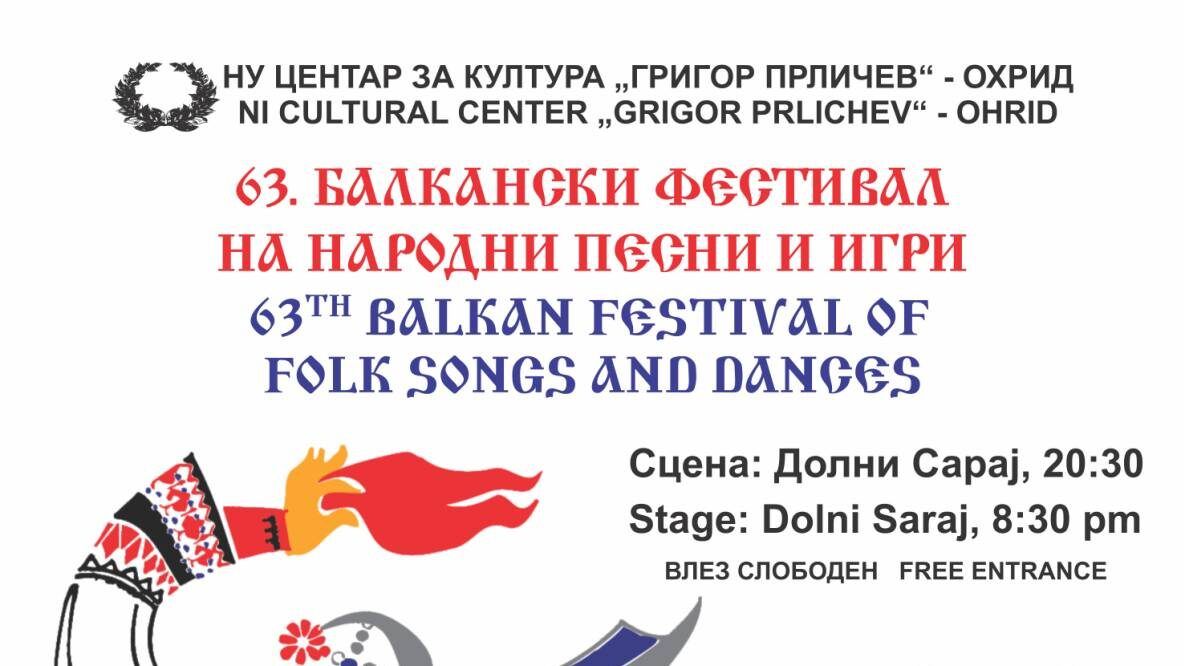Post Views: 307 Утре започнува 63. издание на Балканскиот фестивал на народни песни и игри во организација на Центарот за култура „Григор Прличев“.Програмата започнува со изложбата насловена „Моменти“ од авторот Антонио Стојчески која ќе биде отворена на 2 јули.Свеченото отворање на Фестивалот ќе биде со целовечерен концерт на националниот ансамбл „Танец“ со почеток во 20:30 часот на сцената на „Долни Сарај“. Пред почетокот на концертот, ансамблите традиционално ќе продефилираат низ охридската чаршија. Дефилето на учесниците ќе започне од пред Центарот за култура...