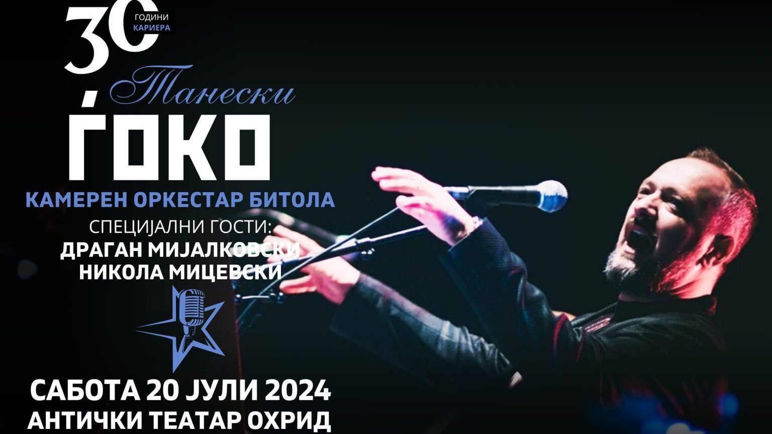 Post Views: 336 Јубилејот 30 години музичка кариера Ѓоко Танески ќе го одбележи со голем солистички концерт насловен „Најдоброто од Ѓоко Танески“ закажан на 20 јули во Античкиот театар во Охрид.–Го нарекуваат човек глас, пејач со глас како од Бога даден за опејување на можеби најубавите балади… глас кој ги топли душите и ги милува срцата затоа на сцената на Антички очекувајте незаборавна вечер полна со добра музика, многу емоции и срце на тацна, онака како што тоа го прави Ѓоко, велат организаторите.Концертот на Антички е со почеток во 21 часот, а на сцената Ѓоко...