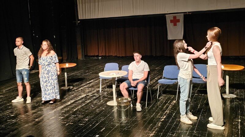 Post Views: 230 Вчера вечер, театарската група на Црвен крст Бар, Црна Гора, во Центарот за култура Григор Прличев, на вториот ден од Театарскиот фестивал ВДИШИ ТЕАТАР ја изведе својата претстава.Опкружени со војна, омраза, страдања се причина за младите да тргнат во потрага по изгубените вредности и да откријат дека во секој човек тлее искра на хуманост и човечност, на која и треба многу малку за да се разгори, беше темата на синоќешната претстава.На третиот ден од театарскиот фестивал „ВДИШИ ТЕАТАР“ љубителите на театарот ќе имаат можност да го проследат...