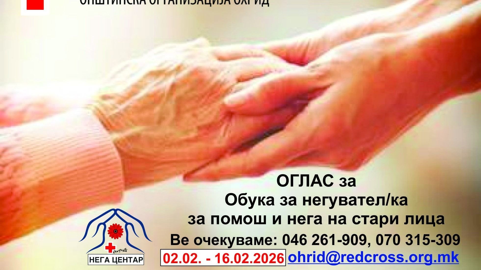 Post Views: 100 Црвен крст Охрид е овластена организација за спроведување на обуки за Негувател/ка за помош и нега на стари лица во Охрид и Дебрца, согласно верификувана програма од страна на Центарот за образование на возрасните и Министерството за образование и наука на Република Северна Македонија.Со цел унапредување и развивање на услугите за долготрајна нега на стари лица преку ангажирање на стручен и професионален кадар, Црвен крст Охрид организира обука за негувател/ка за помош и нега на стари лица. Обуката, која содржи теоретски и практичен дел, ќе се реализира во...