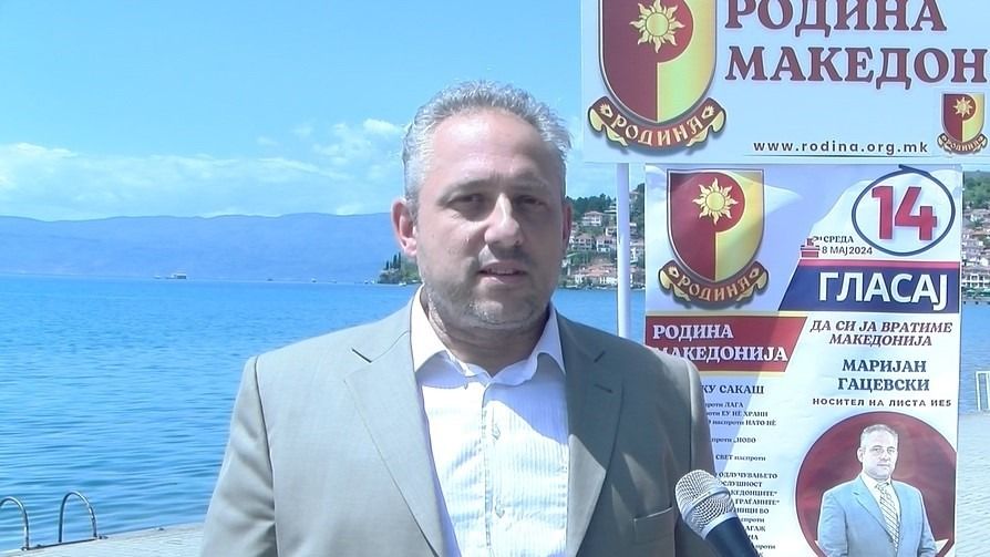 Post Views: 225 Политичката партија Родина Македонија денеска во Охрид ги промовираше програмските цели со кои настапува на парламентарните избори. Нашето мото е „да ја вратиме Македонија на македонците“ затоа што сакаме државата да ја вратиме на вистинскиот пат, кажа носителот на листа во 5ИЕ, Маријан Гацевски.„Неможејќи веќе да издржиме гледајќи наназад 33 години како политичките фели со само менување на бојата но не и на нивната суштина и срж, во изминатите години не променија ништо освен наше обезличување на македонците, понижување и погазување до степен на наше целосно...