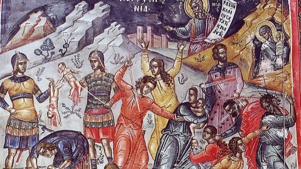 Post Views: 161 Бидејќи Мудреците од исток не се вратија од Витлеем во Јерусалим за да му јават на Ирода за новородениот Цар, туку на заповед од ангел по друг пат заминаа за својата татковина, царот Ирод се разјари како лута ѕверка и нареди да се убијат сите деца на возраст до две години во Витлеем и во сета витлеемска околија. Оваа страшна царска заповед беше извршена доследно. Неговите војници некои деца ги убија со меч, други ги разбиваа врз камења, трети ги гмечеа со нозе, четврти со рацете ги задавија.И се крена плач и лелек на мајките до небесата; пискот и горко...