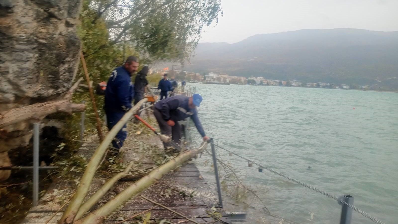 Post Views: 142 Неповолните временски услови проследени со силен јужен ветер, кои вчера го зафатија Охрид и околината, предизвикаа сериозни проблеми во градот. На повеќе локации беа забележани скршени дрвја и големи гранки, што го отежнаа сообраќајот и го нарушија нормалното движење на пешаците.Екипите на „Паркови и зеленило“ реагираа веднаш и излегоа на терен за да ја санираат ситуацијата. Интервенции се извршуваат на неколку критични места, меѓу кои „Мостот на желбите“, ул. „Гоце Делчев“, ул. „15-ти Корпус“ и други делови на градот каде паднатите дрвја претставуваа...