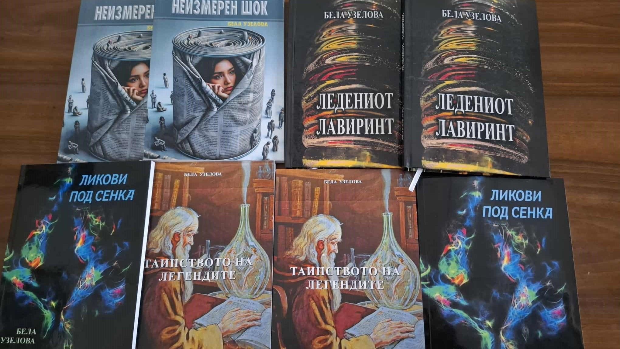 Post Views: 156 Утре, вторник во 12 часот во НУ Библиотека „ Григор Прличев“ во организација на Поетското здружение „Маскота“ од Охрид ќе бидат промовирани четири книги од писателката Бела Узелова (Благица Хаџи Јовановска). Се работи за нејзините дела: „Неизмерен шок“, „Ледениот лавиринт“, „Ликови под сенка“ и „ Таинството на легендите“ сите издадени оваа 2025 година.На две книги издавач и финансиер е Општина Охрид, а како издавачи на останатите две книги се појавуваат Ирис од Струга и Дата ПЕСНОПОЈ од Битола. Во „Неизмерен шок“ писателката Узелова, ...