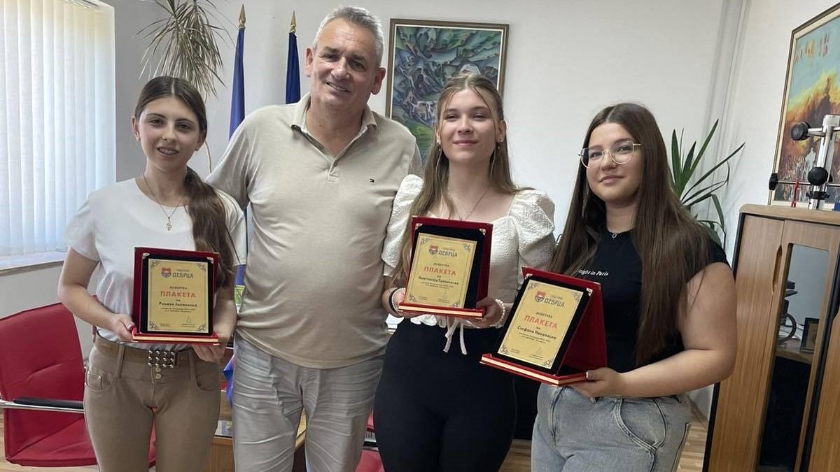 Post Views: 135 Градоначалникот на Општина Дебрца Зоран Ногачески ги прими најдобрите ученици, односно првенецот на генерација Анастасија Тупанческа и учениците на генерација Рената Јолакоска и Стефани Николоска за учебните 2021-2025 година од ООУ „Дебрца” Белчишта.На најдобрите ученици им додели пригодни плакети и парични награди, на првенецот на генерацијата 15.000 денари, а на учениците на генерација по 7.500 денари. Исто така, на сите завршени полуматуранти општината ќе им додели еднократна парична помош од по 5.000 денари.-Како општина остануваме посветени на...