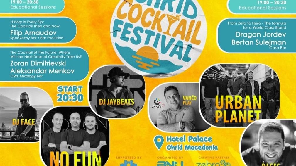 Post Views: 189 Денес и утре, на кејот пред Хотел Палас ќе се одржи првиот Ohrid Cocкtail Festival.Организаторите на Ohrid Cocktail Festival информираат дека цената на сите коктели ќе биде 250 денари, а посетителите ќе можат да уживаат во коктелите кои ќе ги подготвуваат 13 барови од Македонија, едукативни сесии и во богата музичка програма за која ќе бидат задолжени диџеите Face, Jaybeats, Vanco и Gec, и бендовите No fun и Urban planet. Едукативните сесии почнуваат од 19:00, додека музичката програма од 20:30 часот. Целта на фестивалот е да го трансформира Охрид во...