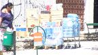 Вода и безалкохолни пијалоци пред влезот на маркетот Рамстор