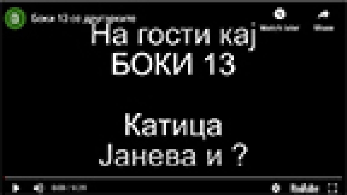 „На гости кај Боки 13 Катица Јанева и ?“ за третото лице во друштвото, на кое во видеото не му се гледа ликот, туку е прикажано од зад грб.