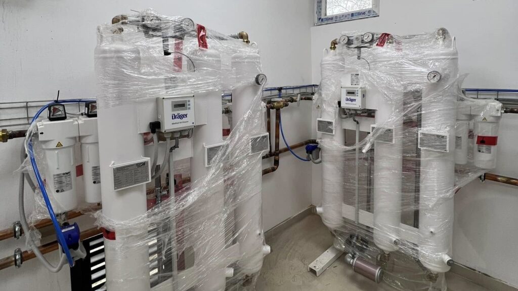 – Монтирани и инсталирани се три компресори со потребната придружна опрема – резервоари, сепаратор, автоматски одвојувач на конденз електронски контролиран, циклонски сепаратор отстранување на влага и масло на излезен степен од компресор и друга опрема. Исто така, извршена е замена и монтажа на бакарен цевен развод, приклучни места, разводни ормани за компримиран воздух за снабдување на оперативниот блок од 12 сали и 2 сали на Клиниката за пластична хирургија, согласно европската фармакопеја, изработена согласно европската директива 93/42/EEC. Во тек е пробна работа на системот за компримиран воздух на комплекс клиники „Мајка Тереза“ – Скопје. По завршување на пробната работа, Министерството за здравство ќе одреди термин за целосен прекин на снабдувањето со компримиран воздух на сите клиники во болничкиот комплекс, за поврзување со останатите корисници. По спроведување на овие активности, системот за компримиран воздух ќе биде ставен во целосна функција, e наведено во соопштението.