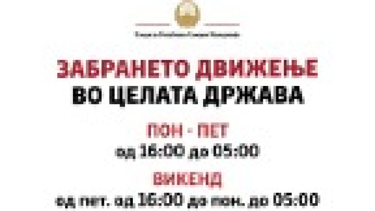 За време на викендот се забранува движењето за сите граѓани од петок во 16:00 часот до 05:00 часот во понеделник.