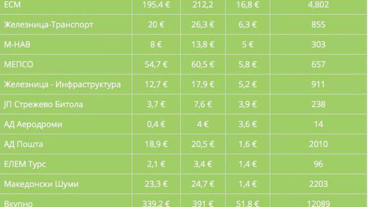 10 државни и јавни претпријатија трошат цирка 400 М€ годишно, скоро половина милијарда…сите се превработени со администрација и партиски вработувања, јавашлук колку ти душа сака…па правеле загуби повеќе од 50М€.-обвинуваат од ИНТЕГРА, Македонска конзервативна партија.