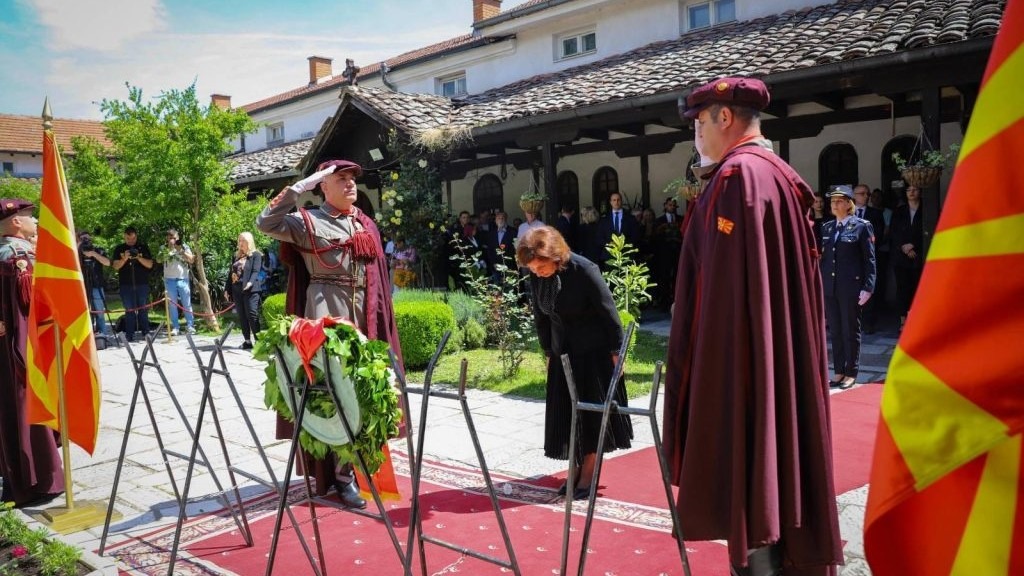 И Претседателката Гордана Сиљановска-Давкова положи свежо цвеќе на неговото вечно почивалиште во дворот на црквата „Свети Спас” во Скопје.