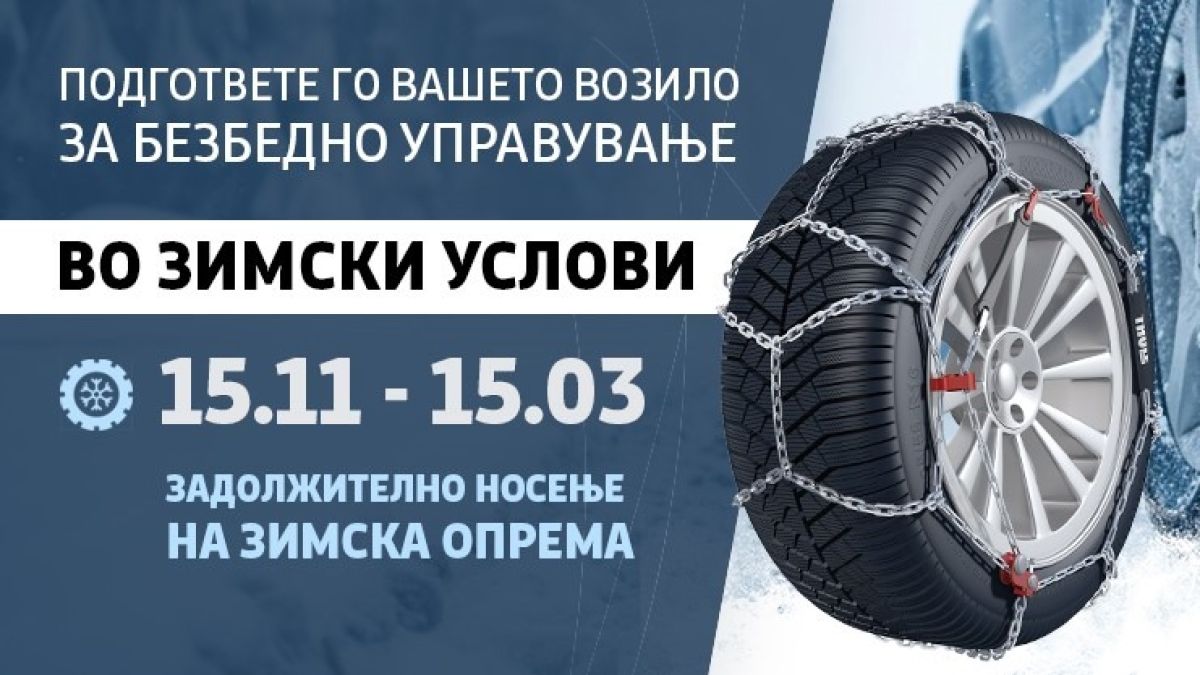 Од денес почнува да важи задолжителната обврска за носење зимска опрема во возилата која ќе трае до 15 март.
