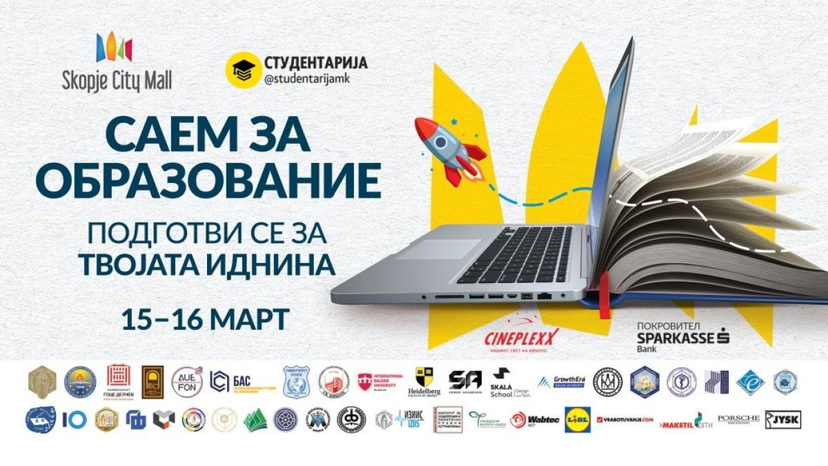 На 15 и 16 март во Скопје Сити Мол ќе се одржи Саем за образование во организација на Скопје Сити Мол и најголемата студентска заедница Студентарија. На Саемот ќе учествуваат 10 универзитети со над 80 факултети од Македонија, како и академии за дигитални вештини и продажба и бројни компании и организации за млади.