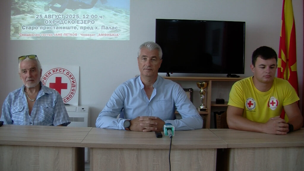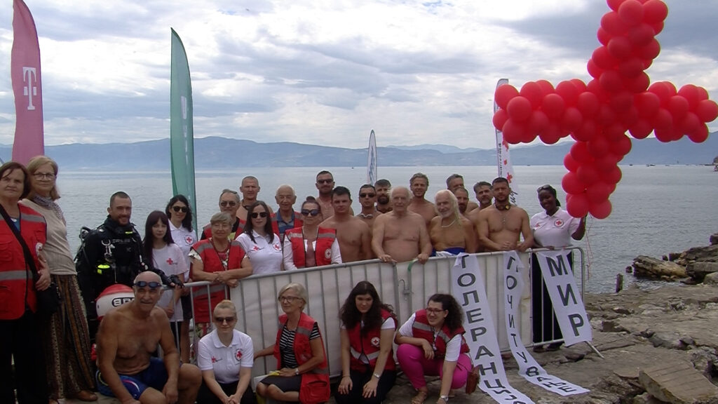 Денеска во водите на Охридското езеро се одржа интересен настан со хумана порака за мир во светот. Кај малото пристаниште учесниците во штафетното нуркање пливаа 25 метри во должина со еден здив. Настанот е во рамки на фестивалот на водени спортови , а го организира Црвен крст по повод 80 годишниот јубилеј. Специјален гостин беше човекот амфибија, Јане Петков Сандански, Бугарија.