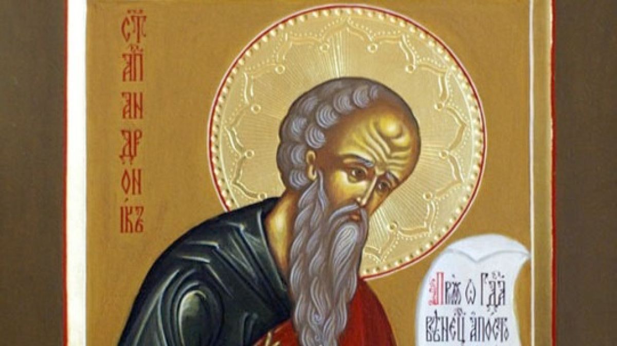 Еден од седумдесетте. Роднина на светиот апостол Павле, како што пишува самиот Павле (Рим. 16, 7), спомнувајќи ја и светата Јунија, помошничката на Андроник. Андроник беше поставен за епископ на Панонија, но не живееше на едно место туку го проповедаше Евангелието по цела Панонија. Со Јунија тој успеа да приведе кон Христа многумина и да разори голем број идолски храмови. Обајцата имаа благодатна сила на чудотворство, со којашто ги изгонуваа демоните од луѓето и исцелуваа секаква немоќ и болест. Обајцата пострадаа за Христа и така примија двоен венец: и на апостолство и на мачеништво. Нивните свети мошти се најдени во Евгениските предели (забележано под 22 февруари).
