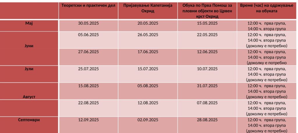Црвен крст Охрид ги објави термините за обука по прва помош за пловни објекти, која ќе се одржува во нивните простории.