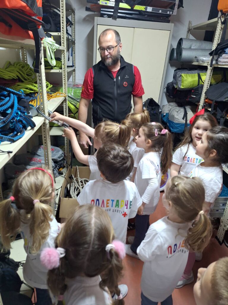 Во дружење, игра, забава и спорт, децатa што ја следат програмата во едукативниот центар на Црвен крст Охрид, „Полетарче“, го одржаа последниот час од пролетниот циклус на Програмата за подготовка на деца за во училиште, во Оперативниот центар на Планинската спасителна служба (ПСС) на Црвен крст Охрид, каде љубопитството за работата на спасителите на планина им беше задоволено со видео презентации од спасителните акции презентација на опремата за спасување и елементарни техники за искачување на вештачката карпа.