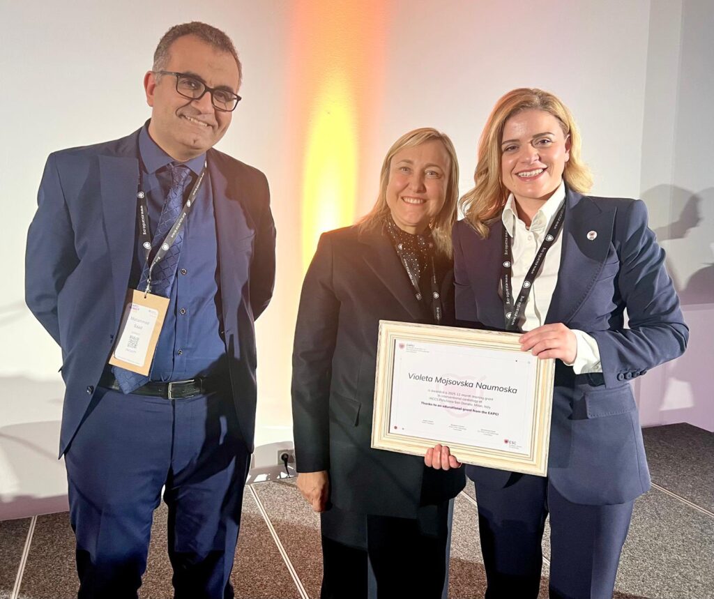 По впечатливиот настап во 2025 година, кога со предавањата „All Things Vascular” и „Imaging to the Rescue” ги претстави најсовремените пристапи во третман на комплексни васкуларни и периферни артериски лезии и предизвика значаен интерес кај меѓународната стручна јавност, д-р Виолета Мојсовска Наумоска од Кардиолошкиот центар „Св. Стефан” – Охрид на 19 февруари 2026 година во Минхен ја доби престижната европска стипендија за едукација и професионална надградба.