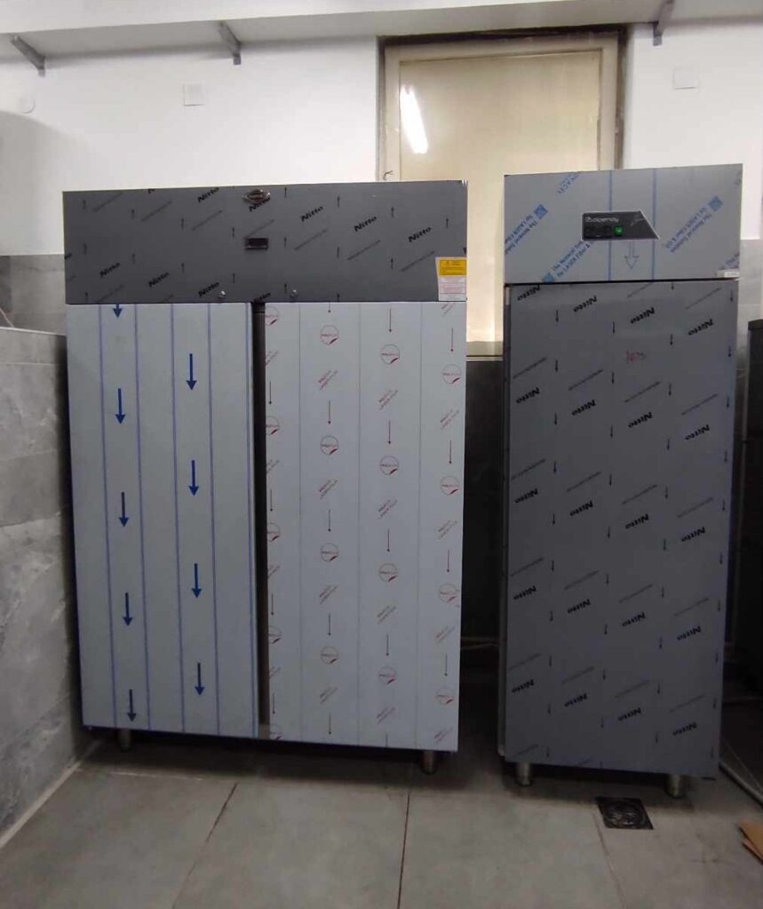 Обезбедени се машина за миење чинии, фрижидер за замрзување 700л, фрижидер за замрзнување 1400л, фрижидер за одржување 700л, шпорет со 4 рингли и фурна, индустриска машина за перење облека 15кг, индустриска машина за сушење облека 14 кг, дебуратор 12л и подлога инокс.