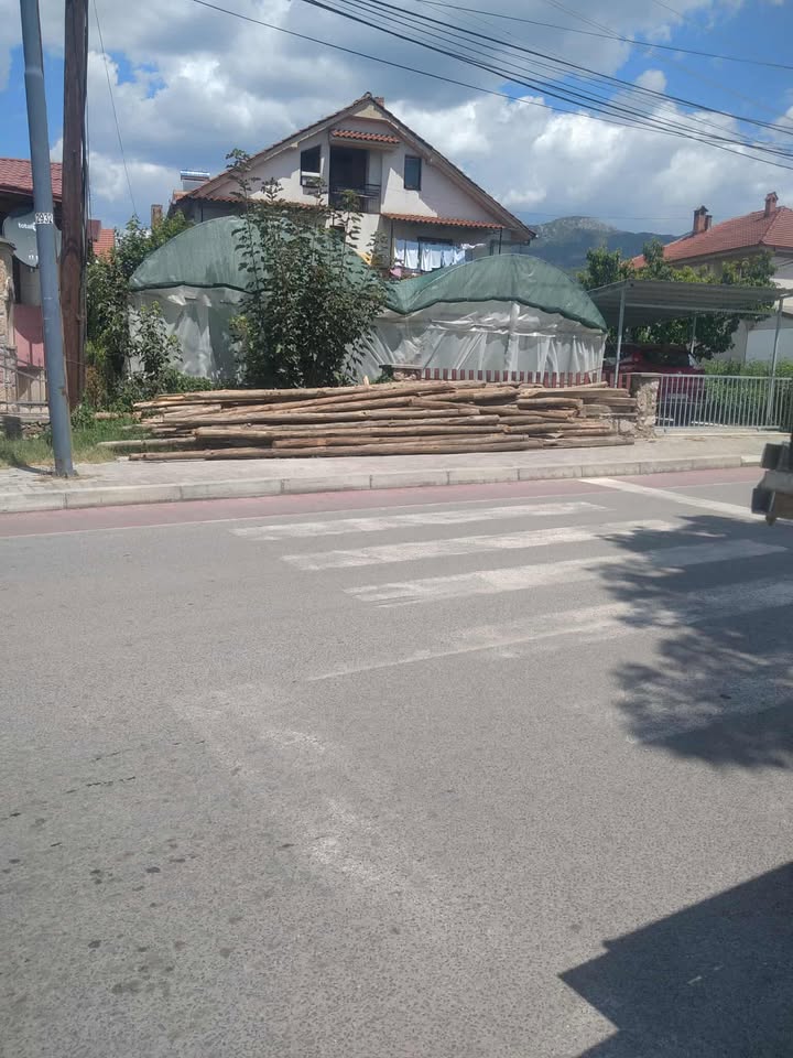 Тротоарот не е ниту двор ниту плевна за да може некој да си растовари на него дрва и греди, посочуваат граѓаните и бараат тротоарот да биде прооден, посебно што на тоа место има и пешачки премин.
