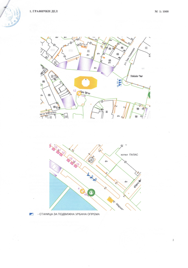 Графичките прикази со нумерички ознаки на урбаната опрема, заинтересираните субјекти можат да ги превземат од web страната на ЈП Градски Пазар Охрид, https://jpgradskipazarohrid.mk/ или секој работен ден од 07.00-15.00 часот во просториите на ЈП Градски Пазар Охрид.