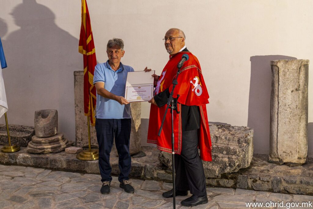 –Чест ни е што Охрид како домаќин е дел од оваа поставка со своите главни симболи, изработени со професионална помош и стручна поддршка токму од Македонското грбословно друштво. Општина Охрид отсекогаш ја имала културата за свој приоритет. Како и до сега, така и во иднина ќе продолжиме да даваме поддршка на вакви проекти кои ја збогатуваат културната понуда на градот и ја зајакнуваат нашата самосвест како држава. Посакувам оваа изложба да биде инспирација за младите генерации, за локалните заедници и за сите нас, да продолжиме да го почитуваме, негуваме и унапредуваме она што не прави Македонци, истакна Крстеска во своето обраќање.