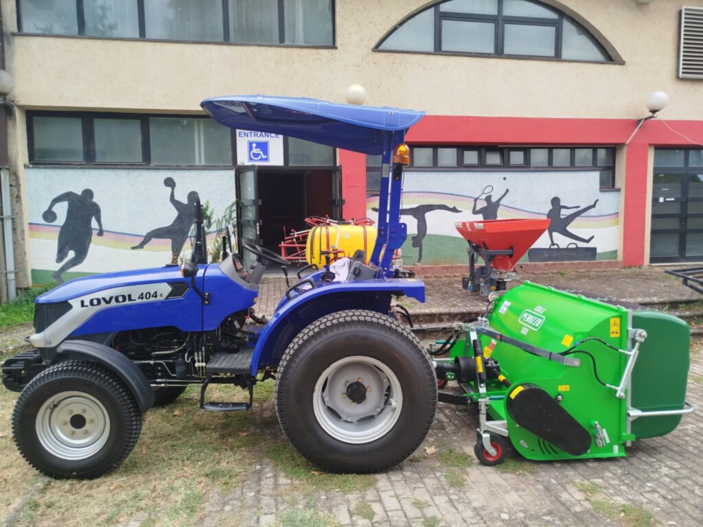 Заедно со тракторот е набавена и повеќнаменска вертикална косилка PERUZZO коала 1600, која покрај редовното косење овозможува и отстранување на сувата трева преку посебни ножеви. Согласно потребите на претпријатието, дополнително е обезбедена и опрема за подобро одржување и прихрана на тревата – ѓубре расфрлач со хидроулично регулирање и прскалка 330L со АГМ пумпа со 8 метри рам, со кои ќе се овозможи оптимално прихранување и третирање на тревната подлога, како на фудбалските терени, така и на голф теренот.