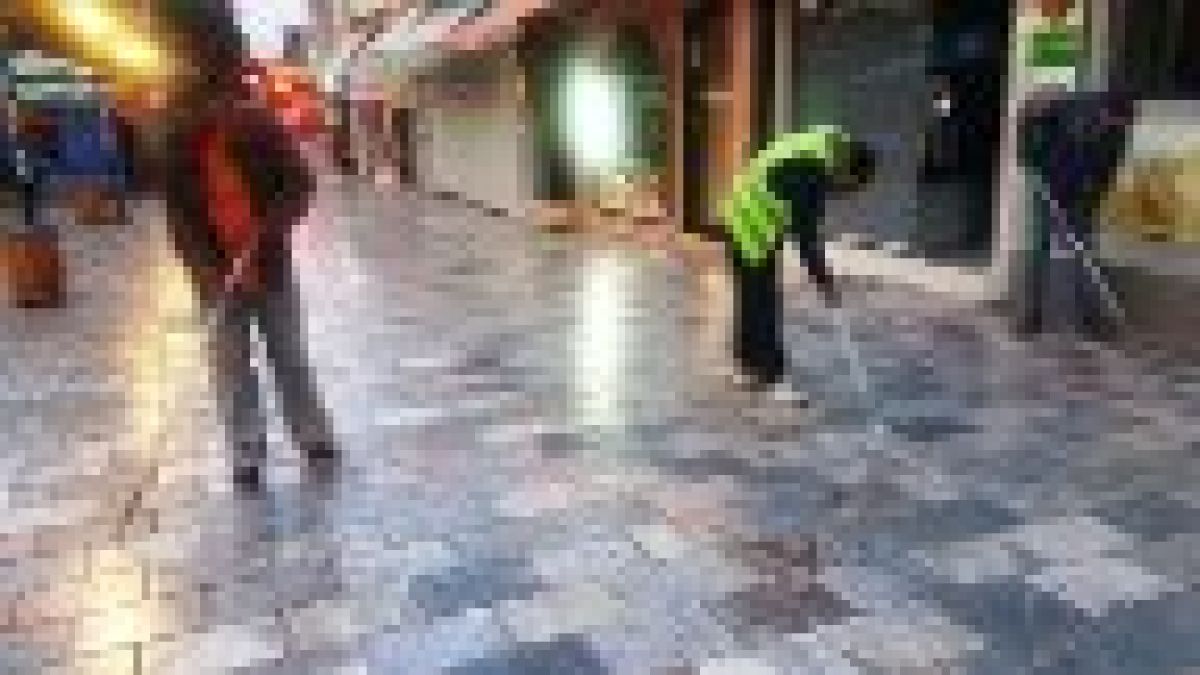Екипите на Ј.П. “Охридски Комуналец” уште од раните утрински часови спроведуваат активности за чистење на мермерниот плочник од чаршијата.
