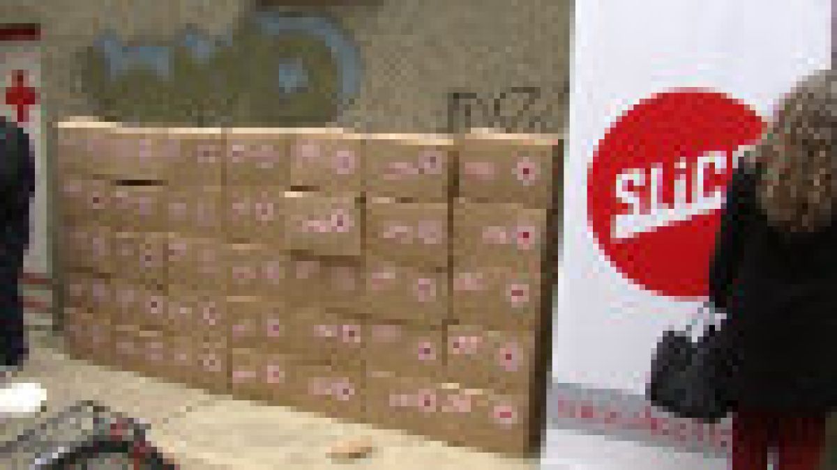 Инаку на денешната акција пакетите ги делеа вработените во компанијата „Slice“, а присутни беа и нивни претставници од канцаларијата во Њу Јорк.