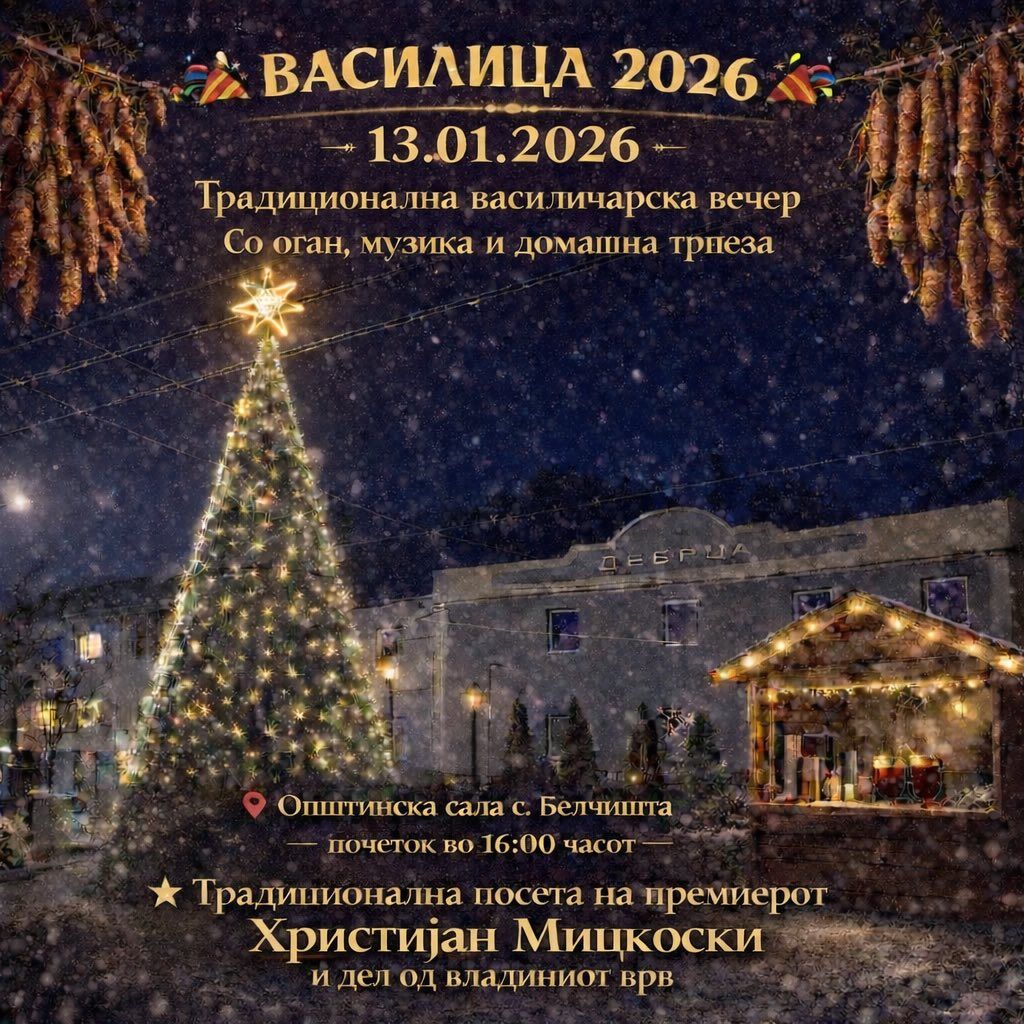 Традиционалната василичарска вечер со оган, музика и домашна трпеза во Дебрца ќе се одржи пред општинската зграда во село Белчишта со почеток во 16 часот.