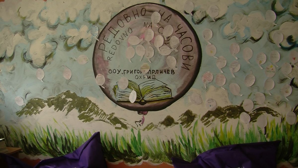 Јана, Андреа и Георгина од ОУ „Григор Прличев“ се вклучени во сликање на мурал во школскиот хол. Талентираните ученички од деветто одделение испраќаат силна порака преку ликовното творештво дека сите деца имаат право на образование. Со нивната дарба за сликање се дел од проектот „Редовно на часови“- Активно вклучување на ромите во образованието на Фондацијата „Чекор по чекор“.