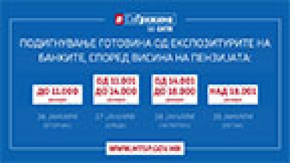 – За пензии со висина над 18.001 денари, исплата да се изврши на 29.01.2021 година (петок).