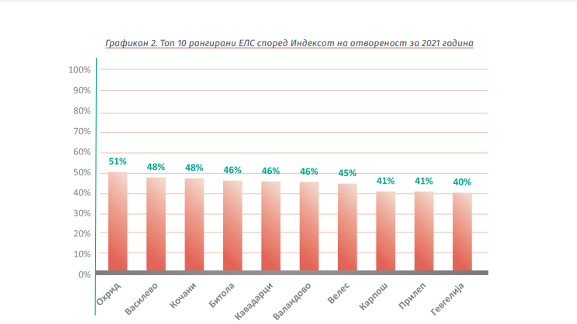 Проценката на состојбата на доброто владеење во единиците на локалната самоуправа во Република Македонија за 2021 година преку Индексот на отвореност можете да го погледнете на овој линк