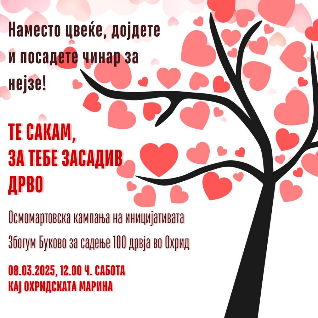 Иницијативата „Збогум Буково“ по повод Денот на жената, 8-ми Март, организира акција за садење 100 дрва во Охрид.