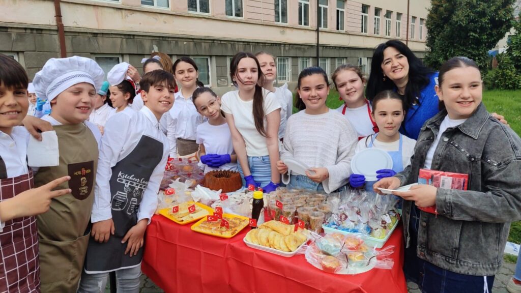 Од школото информираат дека учениците од прво до деветто одделение подготвија разни јадења и рачно изработени украсни предмети, кои беа изложени на штандови во училишниот двор.