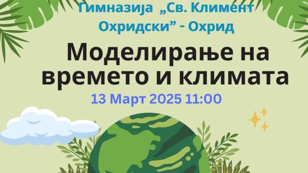 Професор д-р Владо Спиридонов, редовен професор по метеорологија на Институтот за физика при ПМФ, во Гимназијата ќе одржи предавање за значењето на метеорологијата како научна гранка на физиката.