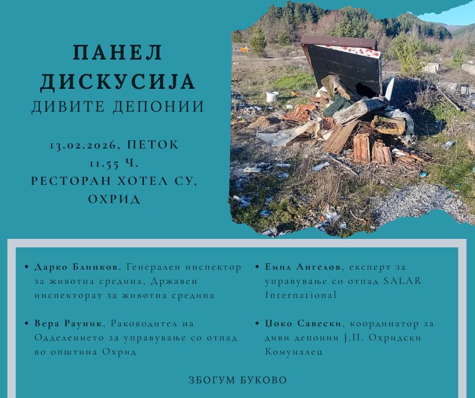Збогум Буково организира панел дискусија на којашто ќе се дискутира за состојбата со депониите и предлог решенија за спречување на непрописното депонирање на цврст отпад во општина Охрид.