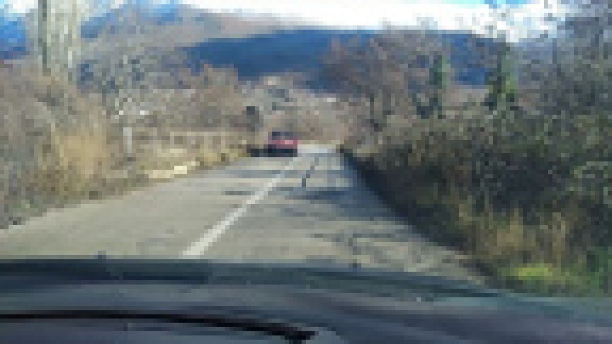 Свлечишта, пукнатини, отворени дупки и крпеници , вака изгледа патот од Охрид до граничниот премин Свети Наум. Тесен, нерегледен и небезбеден.