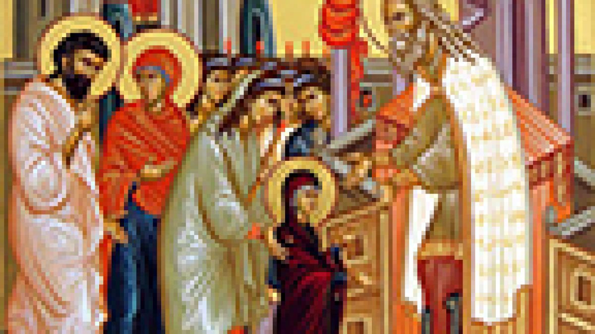 Кога првосвештеникот Ја зеде за рака, Ја воведе не само во храмот туку и во Светињата на светињите, каде што никој никогаш не влегуваше, освен архиерејот.