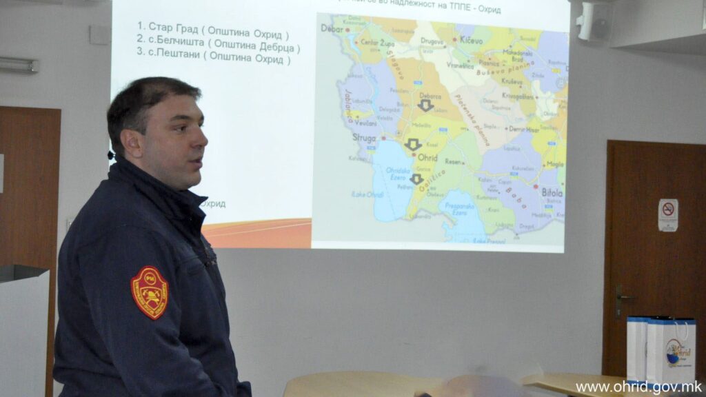 Во рамки на презентацијата беше опфатено подрачјето на делување на противпожарната единица, противпожарната опрема и капацитетите на возниот парк, како и кадровските потенцијали за делување на терен. Во дискусијата беше потенцирано дека во Општина Охрид има неколку критични точки за делување, а тоа е Стариот град, Централното градско подрачје и крајбрежјето на Охридското Езеро на потегот кон Свети Наум.