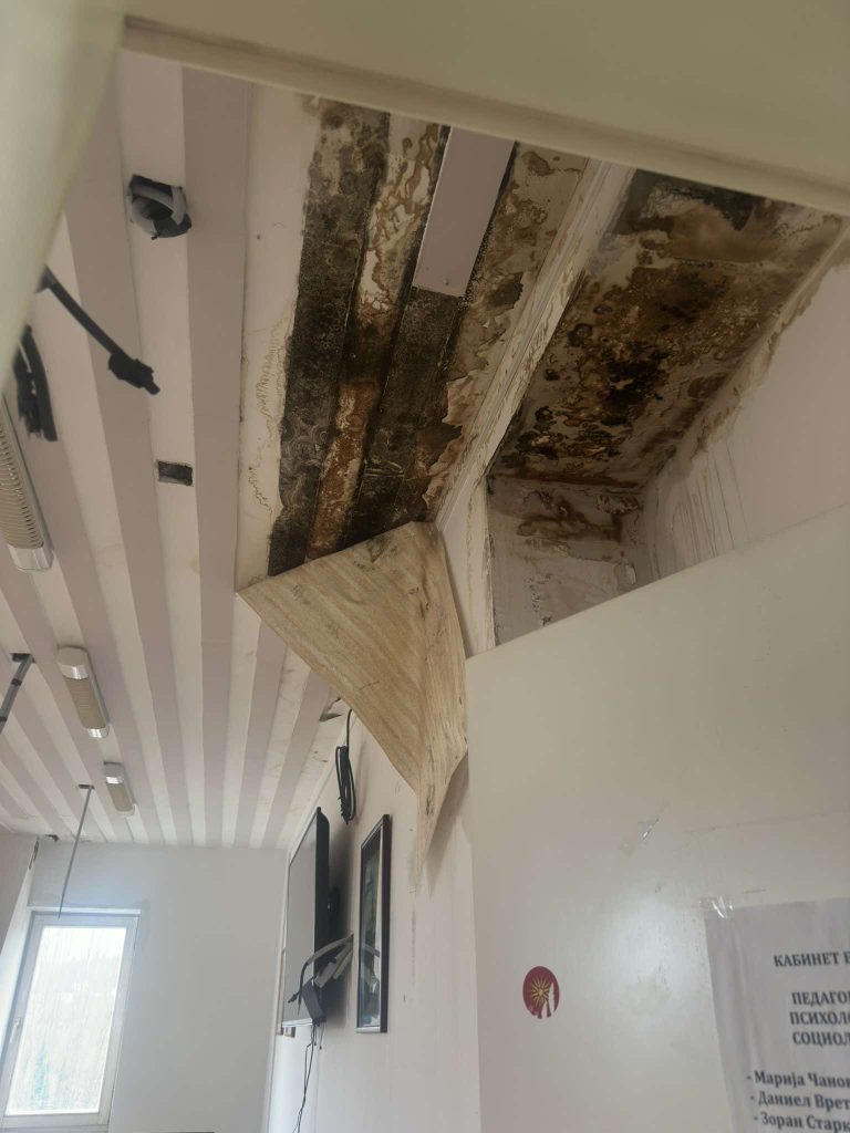 Обилните врнежи изминатиот период ги влошија условите во ОСУ „Св Климент Охридски„. Ученици и родители на социјалните мрежи споделија слики на кои се гледаат значителни оштетувања на тавани, прокиснување и мувла во училниците. 5 од вкупно 34 простории за настава се затворени и веќе извесен период истите не се користат, а останатите се доволни за непречено и редовно реализирање на наставата известија денеска од гимназијата во соопштение за јавност. Состојбите вчера биле констатирани и од страна на Државниот здравствен и санитарен инспекторат.