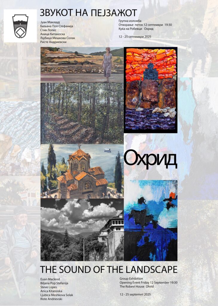 -Секој од уметниците презентира дела инспирирани од пејзажите на Охрид и С. Македонија, толкувани низ сопствена емоционална, културна и материјална призма. Медиумите што ги користат – сликарство, мозаик и фотографија – нудат повеќеслојно доживување на пејзажот, не само како визуелна туку и како сензорна и емотивна појава. Особено значајно е што Јуан Маклеод и Стив Лопес ја посетија С.Македонија во 2024 година, каде што работеа на терен (en plein air), создавајќи слики инспирирани од директното доживување на македонскиот пејзаж. Тие дела го носат моменталниот дух и атмосферата на просторот, почувствувани во реално време. Во својата суштина, „Звукот на пејзажот“ е колективен израз на поврзаност – помеѓу човекот и местото, помеѓу традицијата и иновацијата, и помеѓу С.Македонија и нејзината поширока уметничка дијаспора, вклучувајќи ги и сѐ подлабоките уметнички врски со Австралија, вели м-р Сашо Блажески од НУ Завод и Музеј Охрид.