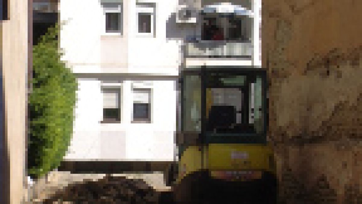 Во центарот на Охрид , кај старото кино на ул „Даме Груев“, 43 семејства во станбена зграда од денеска не ќе можат нормално да функционираат затоа што им е блокиран пристапот до нивните домови.  На тесниот пролаз до нивната зграда започнаа градежни активности за подигнување нов објект.