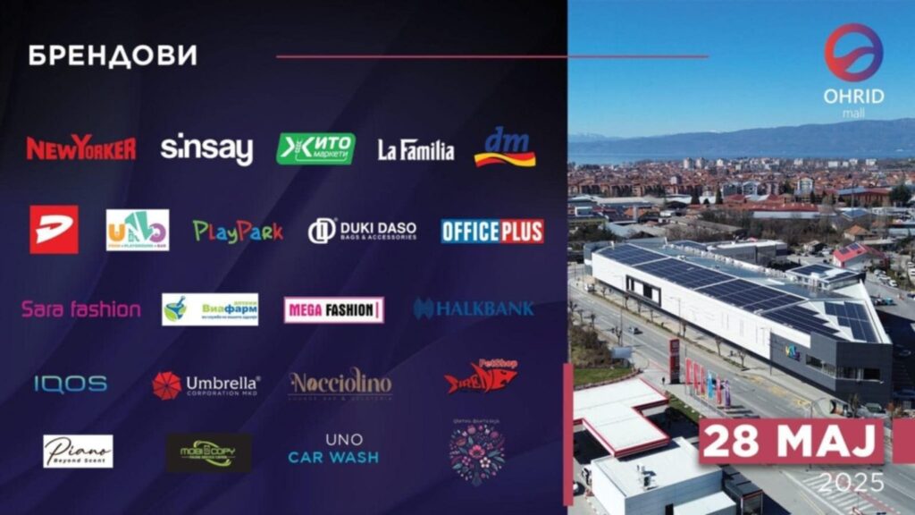 Новиот трговски центар Охрид Мол ќе ги отвори вратите за посетителите во среда, 28-ми мај 2025 година.