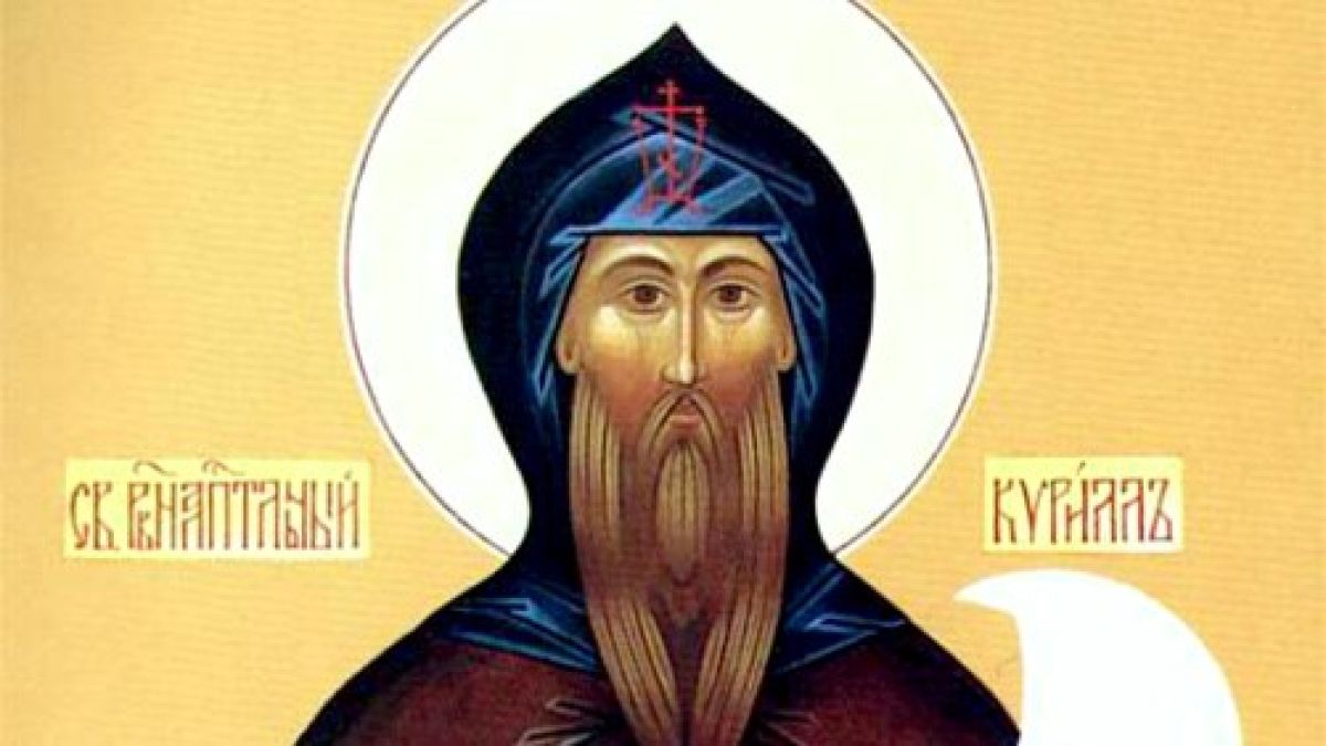 Светиот рамноапостолен Кирил, учител словенски (до примањето на монашка схима – Константин), и неговиот постар брат Методиј, се родени во Македонија, во градот Солун. Светиот Кирил стекна одлично образование, од 14 годишна возраст воспитувајќи се заедно со синот на императорот. Тој рано прими презвитерски чин. Во Константинопол беше библиотекар на соборната црква и учител по философија. Светиот Кирил со успех водеше спорови со еретиците иконоборци. Стремејќи се кон осаменички живот, се повлече на гората Олимп, во манастирот каде што игуман беше неговиот постар брат Методиј, но набргу потоа обајцата беа испратени од императорот Михаил на мисионерско патување заради проповедта на христијанството кај хазарите. Патувајќи, тие ги најдоа моштите на свештеномаченикот Климент, папа Римски. Хазарскиот кнез беше убеден во проповедта на светиот Кирил, па тој и целиот негов народ го примија христијанството. Благодарниот кнез сакаше богато да ги награди проповедниците, но тие одбија да примат дарови, туку наместо тоа побараа тој да ги пушти сите заробени Грци, кои потоа заедно со нив се вратија во Константинопол. Во 862 година, на барање на моравскиот кнез Ростислав, императорот ги испрати да го проповедаат христијанството во Моравија, на словенски јазик. Светите Кирил и Методиј по Божјо откровение ја составија словенската азбука (глаголицата) и ги преведоа на словенски јазик Евангелието, Апостолот, Псалтирот и мноштво други богослужбени книги. Тие го воведоа служењето на словенски јазик. Светите браќа беа повикани во Рим од римскиот папа Адријан I, кој ги прими со голема почест, бидејќи тие ги донесоа со себе моштите на светиот Климент Римски. Во Рим, по природа болежливиот и слаб, свети Кирил се разболе, и пред смртта примајќи монашка схима, се упокои во 869 година, на 42 годишна возраст. Неговите мошти се во црквата на светиот Климент Римски.